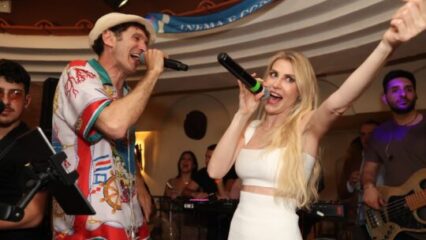 Tra canti e balli,la Ministra ha sventolato il tamburello al ritmo di “O surdato ‘nnammurato” mentre Tardelli intonava ” L’emozione non ha voce” dedicandola alla sua Mirta. Brano poi riproposto sul palco da Barbara Berlusconi in duetto con Gianluigi Lembo.