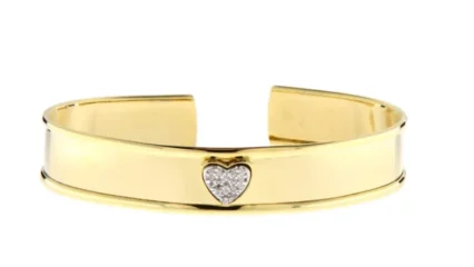 Per la linea Silver & Metal, ecco il bracciale Mya realizzato in ottone placcato oro 18 carati, con al centro un cuore in argento rodiato con zirconi. Rigido e regolabile grazie all’apertura, è pensato per le donne che amano uno stile essenziale, ma desiderano un gioiello capace di farsi notare.