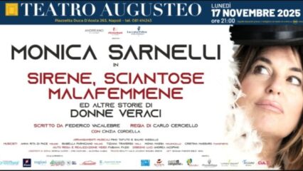 Monica Sarnelli, con “SIRENE, SCIANTOSE, MALAFEMMENE ED ALTRE STORIE DI DONNE VERACI”, sarà nuovamente in scena – lunedì 17 novembre 2025 – al Teatro Augusteo di Napoli ed ancora – nel periodo marzo/aprile 2026 – nei teatri del circuito gestito dal TPC “Teatro Pubblico Campano” a cura di Alfredo Balsamo.