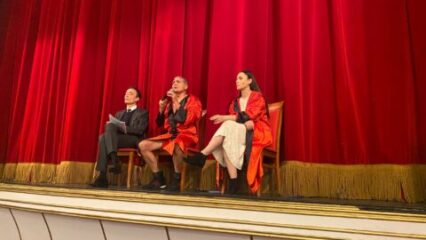 Al termine dello spettacolo sulla vita di Oliva (tratto dal libro “Lo sparviero”), sono infatti saliti sul palco gli attori protagonisti del film tv girato da Cinema Fiction per RaiUno, pellicola che vedrà Ciro Minopoli nei panni dell’ex boxeur.