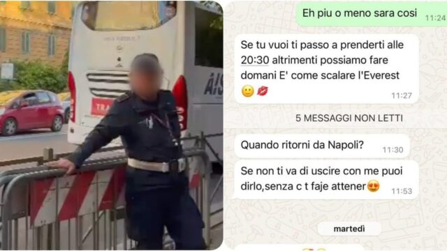 “Ho visto la sua denuncia sui social, così l’ho contattata. L’ho riconosciuto subito”. A parlare è stata Giorgia che ricorda bene quel vigile. “L’ho visto a settembre. Mi ha detto: Se mi dai il tuo numero non ti faccio la multa. L’ho fatto e ha iniziato a tartassarmi per giorni”. E poi, una volta ricontattata sui social, le scriveva: “Quando ci vediamo ti faccio lezioni sul codice della strada”.