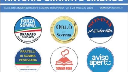 Somma Vesuviana. Con la presentazione ufficiale dell’intera coalizione, Antonio Granato ha annunciato la propria candidatura a Sindaco di Somma Vesuviana. Granato sarà sostenuto da una coalizione composta da sei liste civiche: Forza Somma, A Viso Aperto, Fratelli di Somma Vesuviana, Oblò per Somma, Somma Moderata e Somma Nova. Una proposta seria che raccoglie diverse esperienze e sensibilità del territorio e che nasce dal consolidato percorso maturato nelle istituzioni e da un forte legame con il territorio.